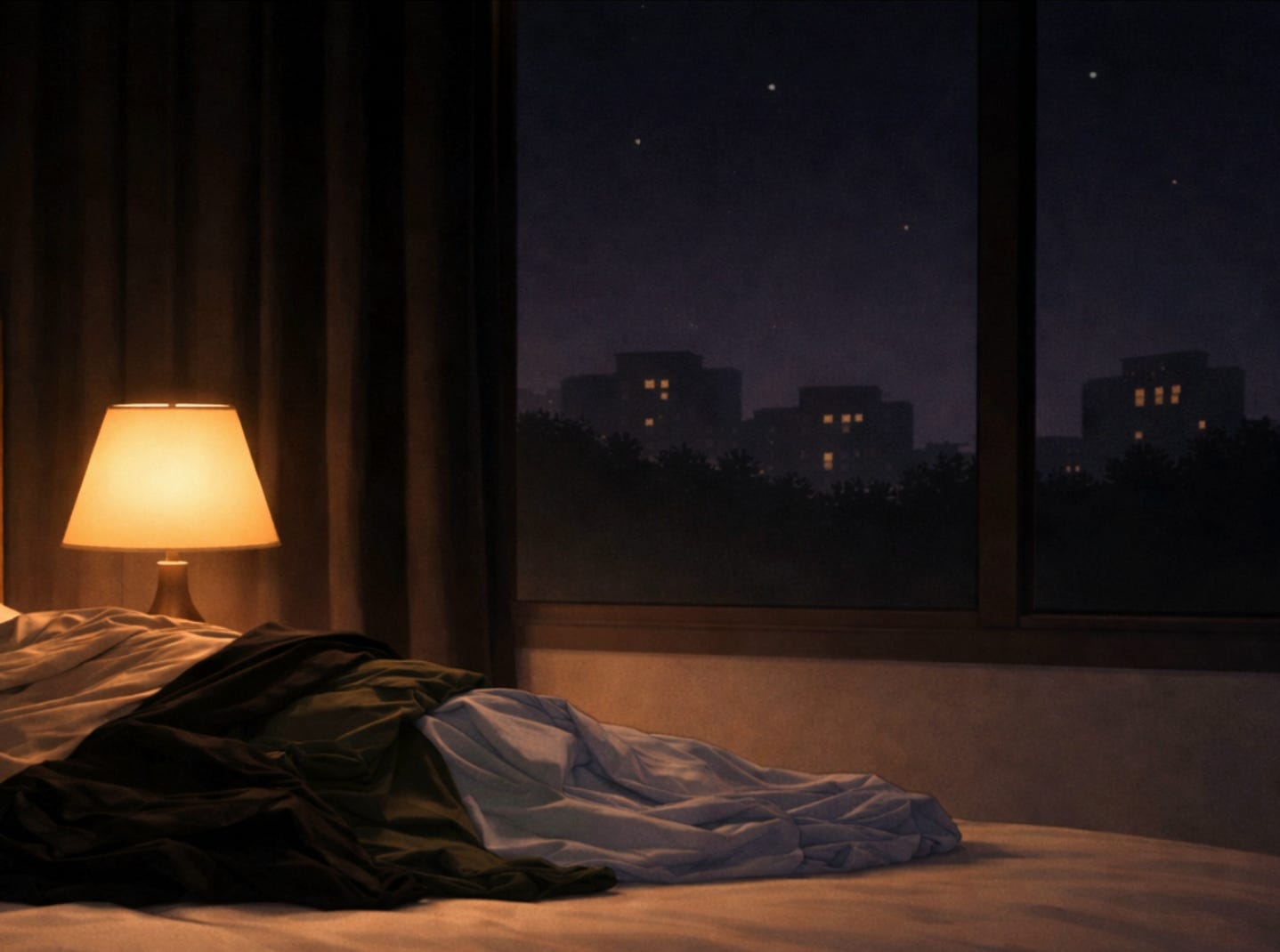 He got up to use the bathroom. The light over the sink hit him hard enough to make him squint. For a second the brightness erased everything. White tile. Tooth cup. His own face, older than he still expected it to look. He washed his hands, turned the light back off, and stood there until the dark returned in layers.
